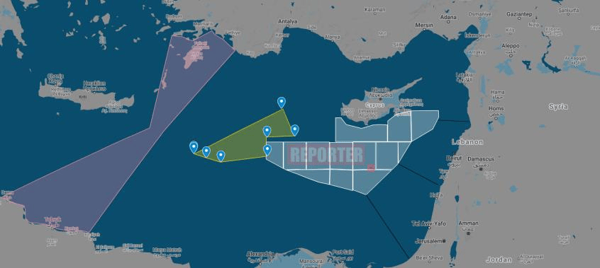 Σύμφωνα με το κυπριακό site reporter.com.cy, η περιοχή που δεσμεύτηκε με την τουρκική Navtex απεικονίζεται με κίτρινο χρώμα.