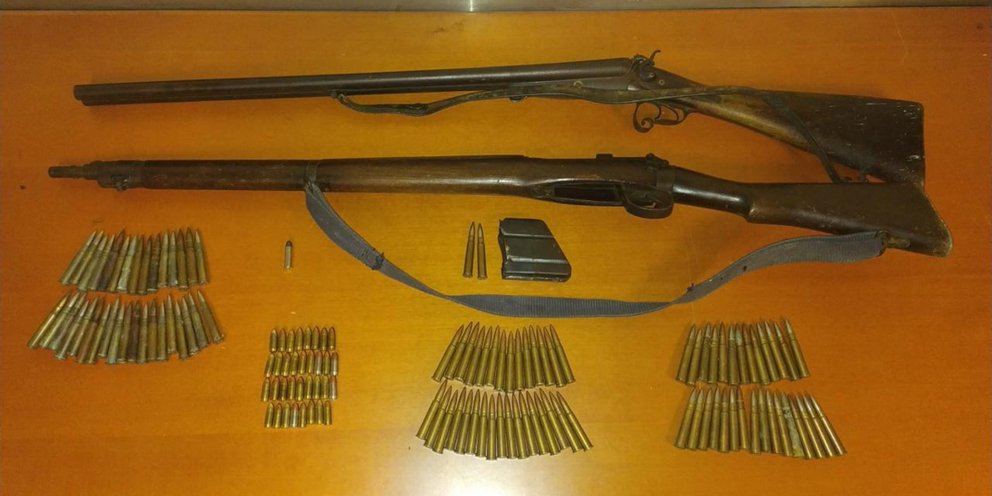 Από τις έρευνες, μεταξύ άλλων, βρέθηκαν και κατασχέθηκαν πολεμικό τυφέκιο με γεμιστήρα, δίκαννο, -2- καραμπίνες, από τις οποίες η μία χωρίς σειριακό αριθμό, -145- φυσίγγια και -9- μαχαίρια, τα οποία θα αποσταλούν για εργαστηριακή εξέταση.