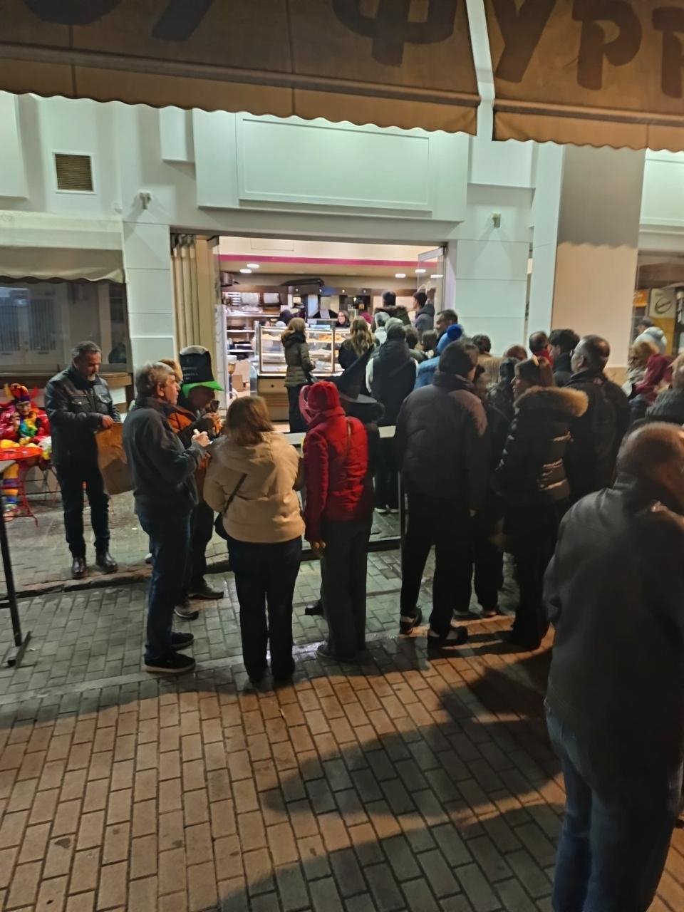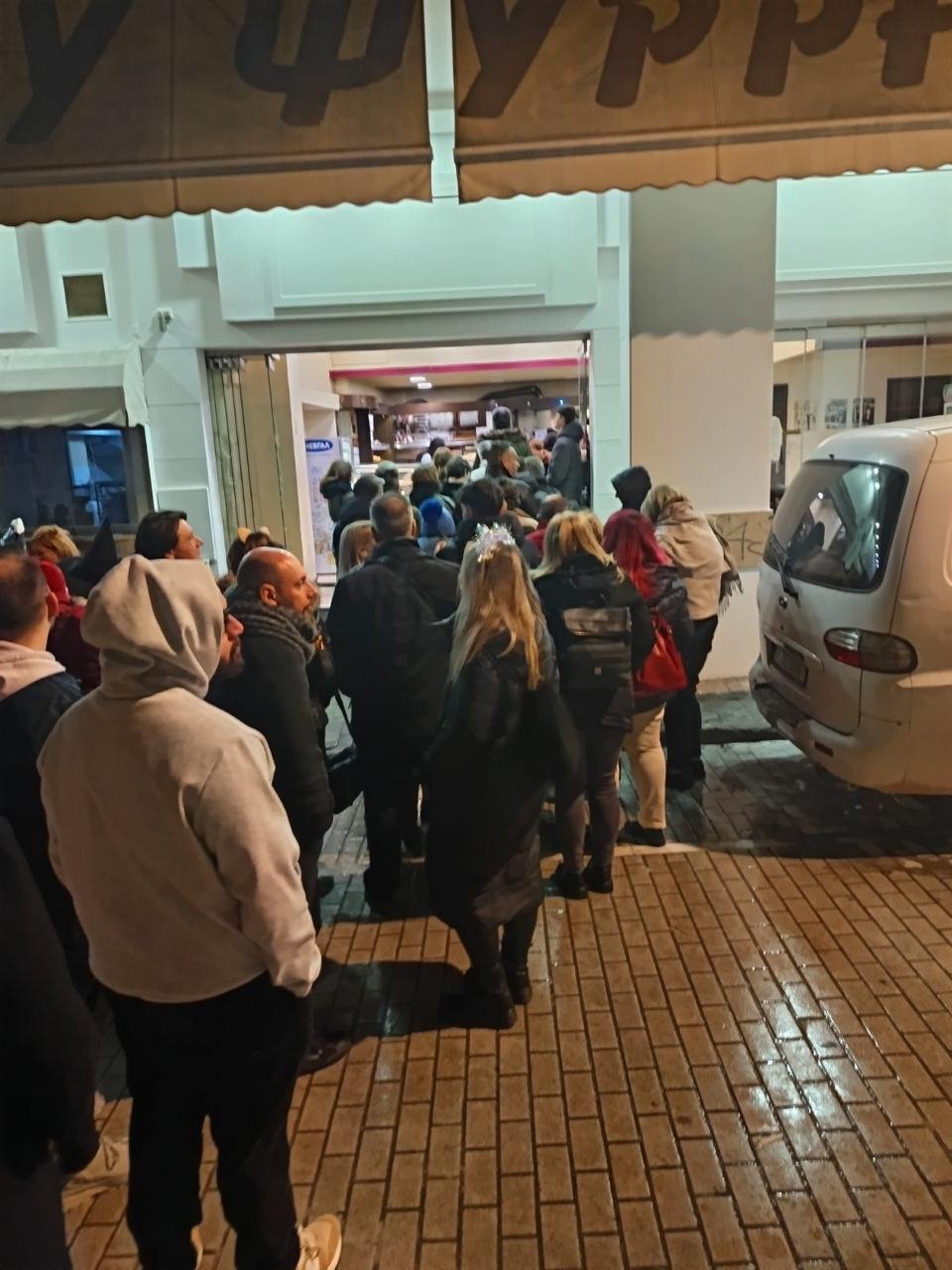 Μάλιστα, όπως φαίνεται και στο βίντεο, οι καταναλωτές την ώρα που περίμεναν έστησαν και ένα μικρό γλέντι, ξεκινώντας από πολύ νωρίς τη γιορτή.