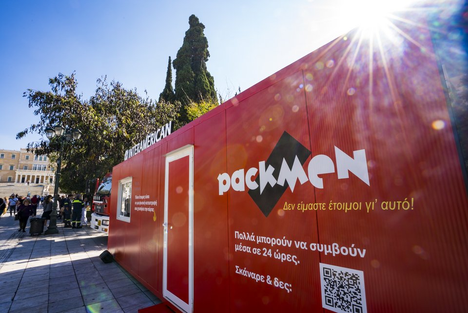 Την πλατεία Συντάγματος –το σημείο που η κίνηση είναι αέναη– επέλεξε η Interamerican για να εμπνεύσει μια διαφορετική συζήτηση. Όχι για το σήμερα, αλλά για το πώς προετοιμαζόμαστε για το αύριο. Στις 29 και 30 Οκτωβρίου, η καρδιά της πόλης μετατράπηκε σε ένα βιωματικό «εργαστήριο ανθεκτικότητας», μέσα από το Packmen Project, μια πρωτότυπη δράση που φέρνει στο προσκήνιο την αξία του να είναι κανείς proactive απέναντι στις φυσικές καταστροφές.