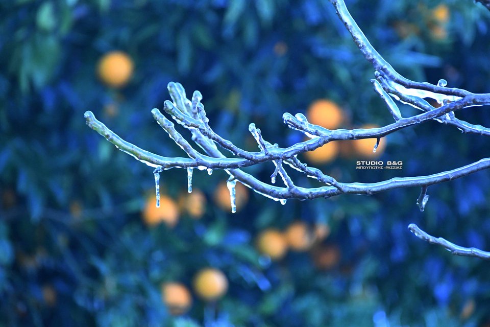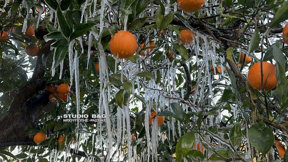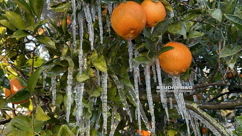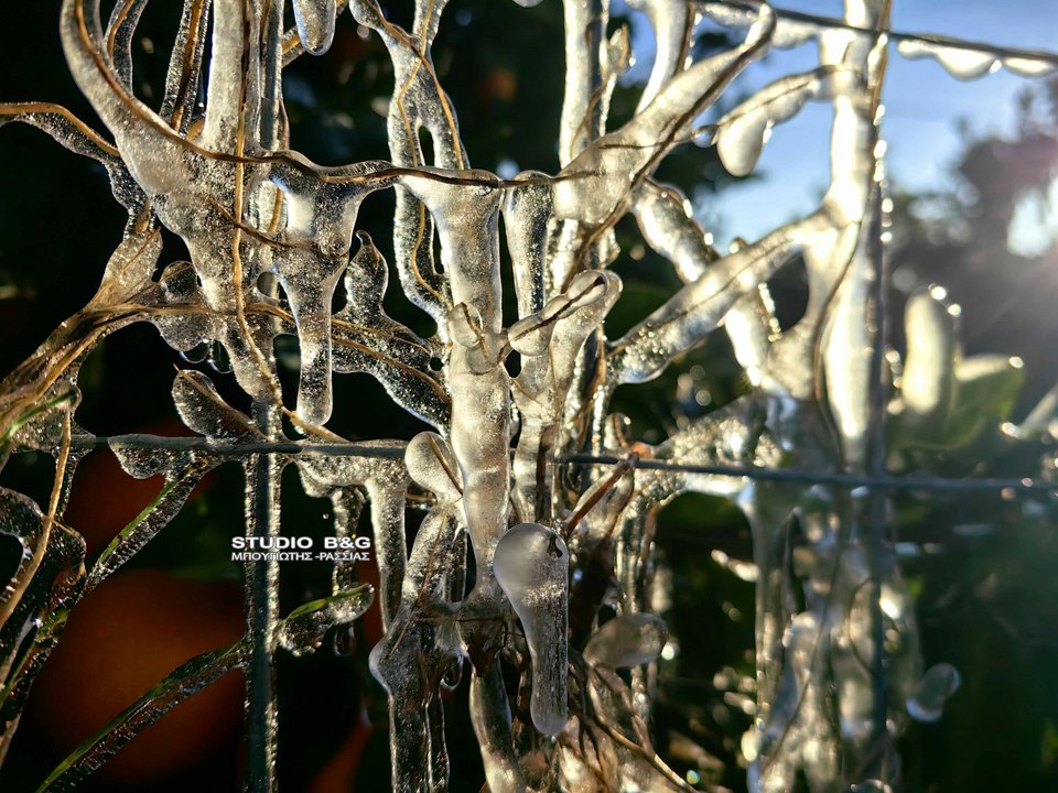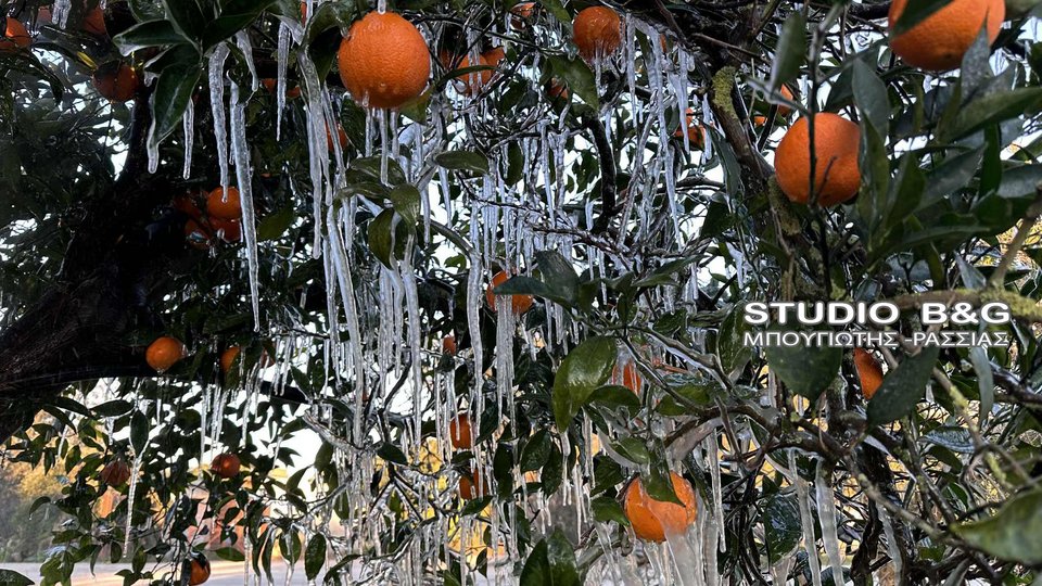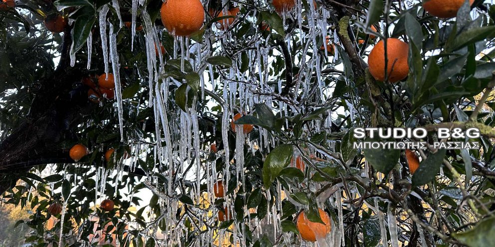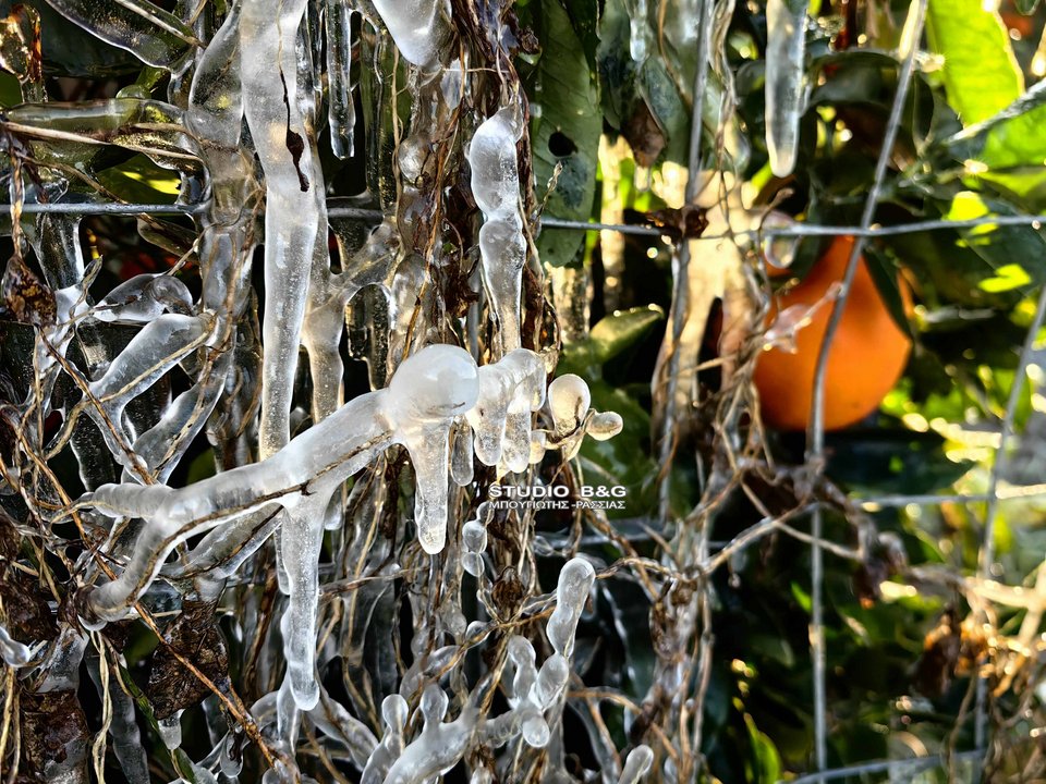 Ισχυρός παγετός σημειώθηκε νωρίς το πρωί της Τρίτης 13 Ιανουαρίου στην Αργολίδα, προκαλώντας προβλήματα στην αγροτική παραγωγή και εντυπωσιακές εικόνες από κατεψυγμένα οπωροφόρα.