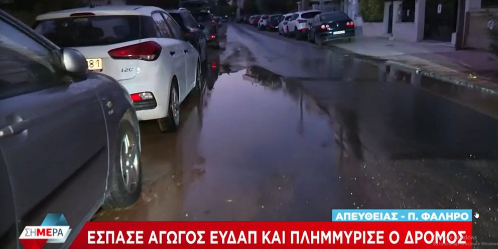 Συγκεκριμένα με νερά γέμισε η οδός Ναυσικάς στο Παλαιό Φάληρο, καθώς αγωγός της ΕΥΔΑΠ έχει σπάσει σε δύο σημεία. Το νερό αναβλύζει μέσα από την άσφαλτο κάτω από τα σταθμευμένα οχήματα.