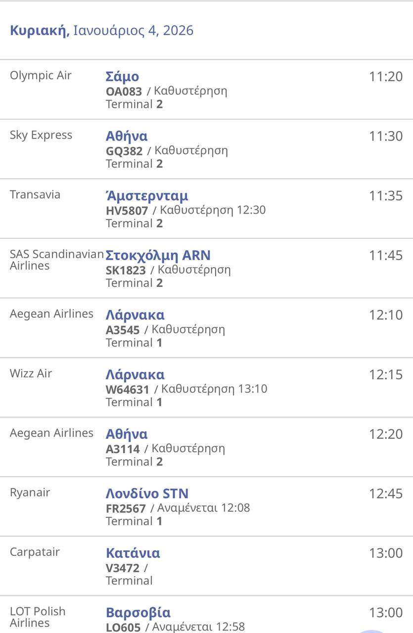 Ενδεικτικό της κατάστασης είναι στον πίνακα στο αεροδρόμιο «Ελ. Βενιζέλος», στις προσγειώσεις αναγράφεται ή ότι πολλές πτήσεις ακυρώθηκαν ή καθυστερούν.