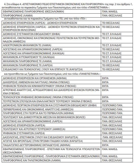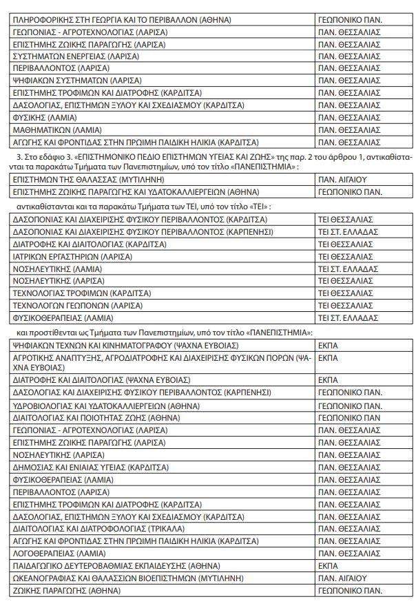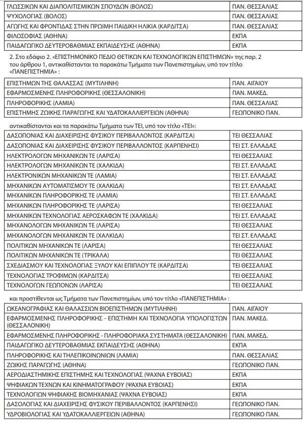 - Στο εδάφιο 1. «ΕΠΙΣΤΗΜΟΝΙΚΟ ΠΕΔΙΟ ΑΝΘΡΩΠΙΣΤΙΚΩΝ, ΝΟΜΙΚΩΝ ΚΑΙ ΚΟΙΝΩΝΙΚΩΝ ΕΠΙΣΤΗΜΩΝ» της παρ. 2 του άρθρου 1 της ανωτέρω απόφασης, αντικαθίσταται το παρακάτω Τμήμα του ΕΚΠΑ, υπό τον τίτλο
