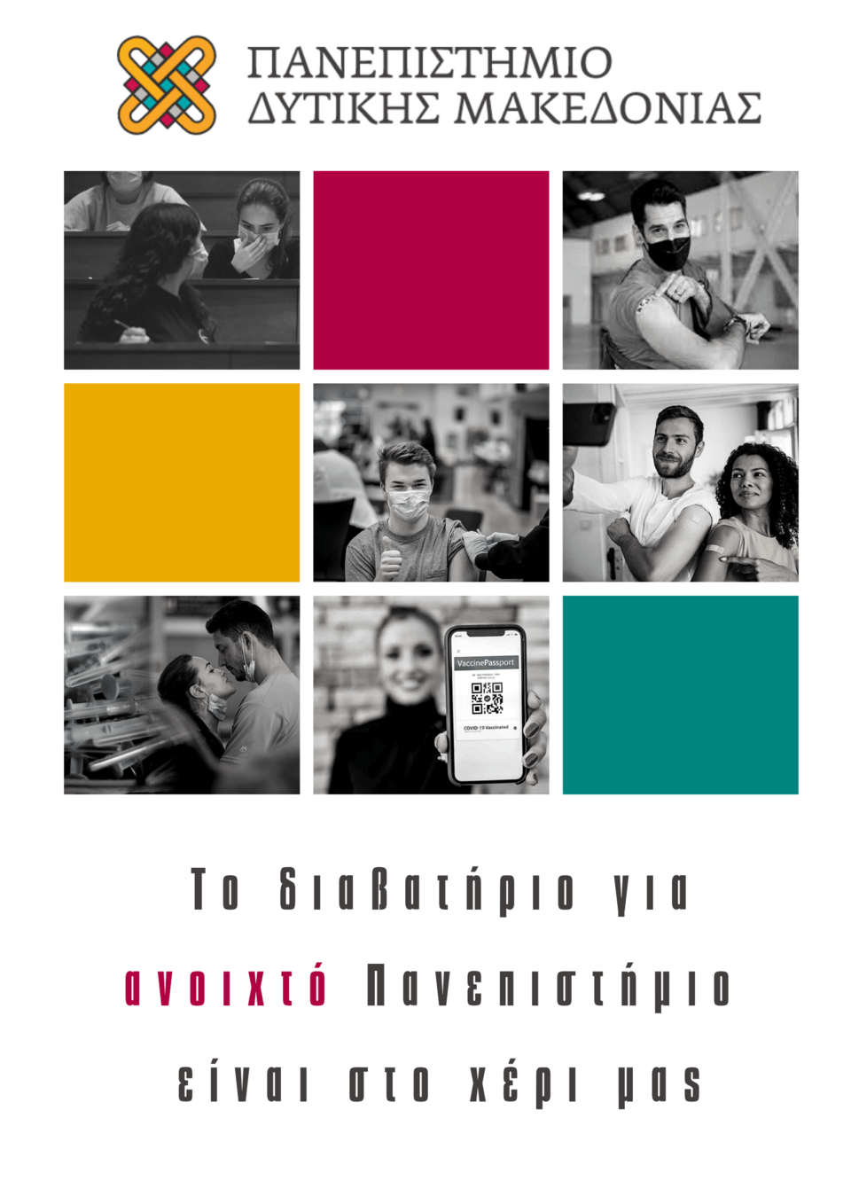 Αν και το Πανεπιστήμιο ξεκίνησε κανονικά τη λειτουργία του, με τη διά ζώσης διδασκαλία να εξελίσσεται χωρίς προβλήματα σε πέντε πόλεις της Δυτικής Μακεδονίας, τηρώντας όλα τα απαραίτητα μέτρα προστασίας και τα πρωτόκολλα που έχουν ορίσει οι αρμόδιες Υγειονομικές Αρχές, ωστόσο προχώρησε και η δημιουργία και λειτουργία των εμβολιαστικών κέντρων. Στόχος είναι η αύξηση του ποσοστού των εμβολιασμένων φοιτητών του Πανεπιστημίου και η διασφάλιση στον μέγιστο δυνατό βαθμό των συνθηκών της διά ζωής διδασκαλίας και λειτουργίας των τμημάτων.