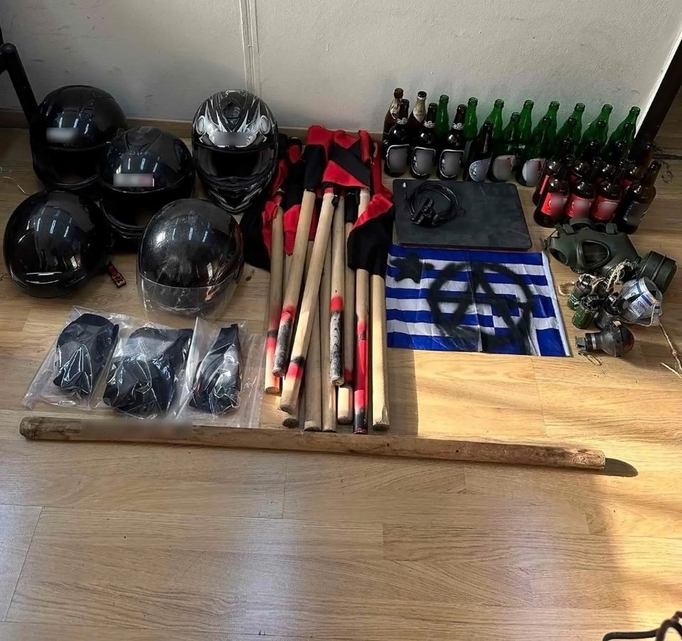 Οι αστυνομικοί πραγματοποίησαν εκτενείς ελέγχους σε δωμάτια φοιτητικής εστίας όπου εντόπισαν, μεταξύ άλλων, χειροβομβίδες κρότου λάμψης, κράνη, ρόπαλα, μπουκάλια ενώ προχώρησαν στην προσαγωγή τριών ατόμων εκ των οποίων οι δύο είναι αλλοδαποί, ένας άνδρας από την Αργεντινή με ιταλικό διαβατήριο και μια γυναίκα από την Σουηδία.