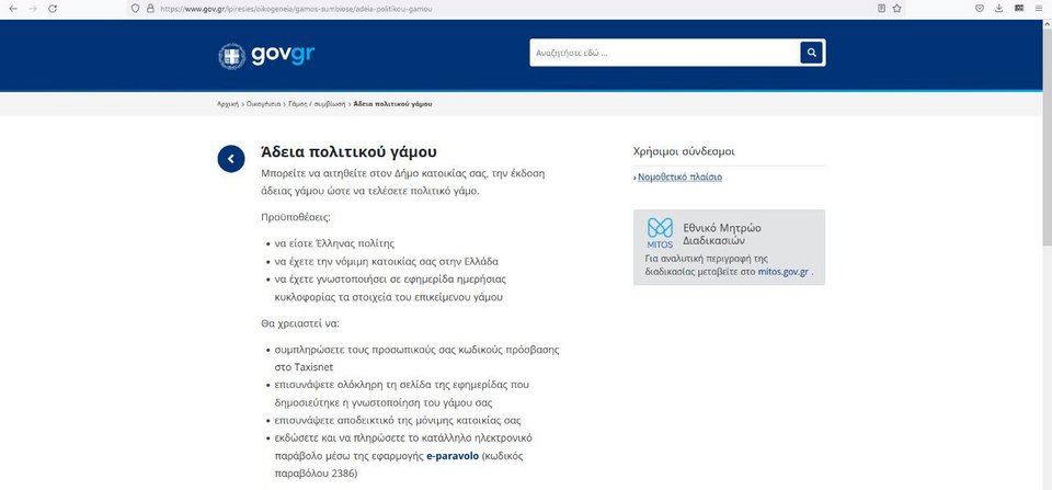 Να αναφερθεί ότι οι κατηγορίες υπηρεσιών είναι παρόμοιες με τις υπηρεσίες του gov.gr, όπως είναι η γεωργία και κτηνοτροφία, δικαιοσύνη, εκπαίδευση, εργασία και ασφάλιση κτλ και παρέχονται σε πολίτες, δημόσιους υπαλλήλους, δημόσιους φορείς, ελεύθερους επαγγελματίες, επιχειρήσεις, νομικά πρόσωπα-νομικές οντότητες. Αξίζει να σημειωθεί ότι 34 υπηρεσίες του gov.gr συνδέονται με τον ΜΙΤΟ, μεταξύ των οποίων η άδεια πολιτικού γάμου, η αίτηση επιδόματος ανεργίας, η αναγνώριση πτυχίου, η ανανέωση άδειας μοτοποδηλάτου, το άνοιγμα οικογενειακής μερίδας λόγω γάμου, το αντίγραφο άδειας οδήγησης λόγω φθοράς, το αντίγραφο ποινικού μητρώου, η απογραφή φυσικού προσώπου στο Μητρώο Εργοδοτών (eΕΦΚΑ), η ασφαλιστική ενημερότητα φυσικών/νομικών προσώπων, οι εγγραφές πρωτοετών φοιτητών, η εγγραφή σε νηπιαγωγείο, η έκδοση υπεύθυνης δήλωσης, το επίδομα παιδιού, η ληξιαρχική πράξη συμφώνου συμβίωσης, θανάτου, γέννησης, γάμου, η πληρωμή εξόδων κηδείας, το πιστοποιητικό οικογενειακής κατάστασης κά.