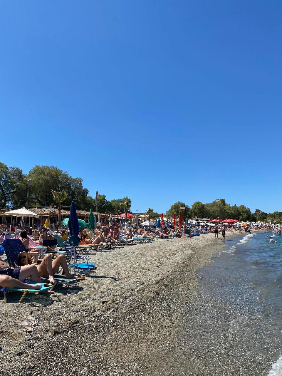 Οικογένειες και παρέες βρέθηκαν στην παραλία για να απολαύσουν τον μπάνιο τους. Κοσμος φτάνει συνεχώς στην παραλία, αναζητώντας ένα σημείο να κάτσει και να χαρεί τη θάλασσα