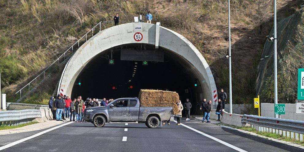 Τρακτέρ και αγροτικά μηχανήματα παραμένουν παρατεταγμένα στη σήραγγα, με τη συμμετοχή του μπλόκου της Νίκαιας, στο πλαίσιο της κλιμάκωσης των κινητοποιήσεών τους.