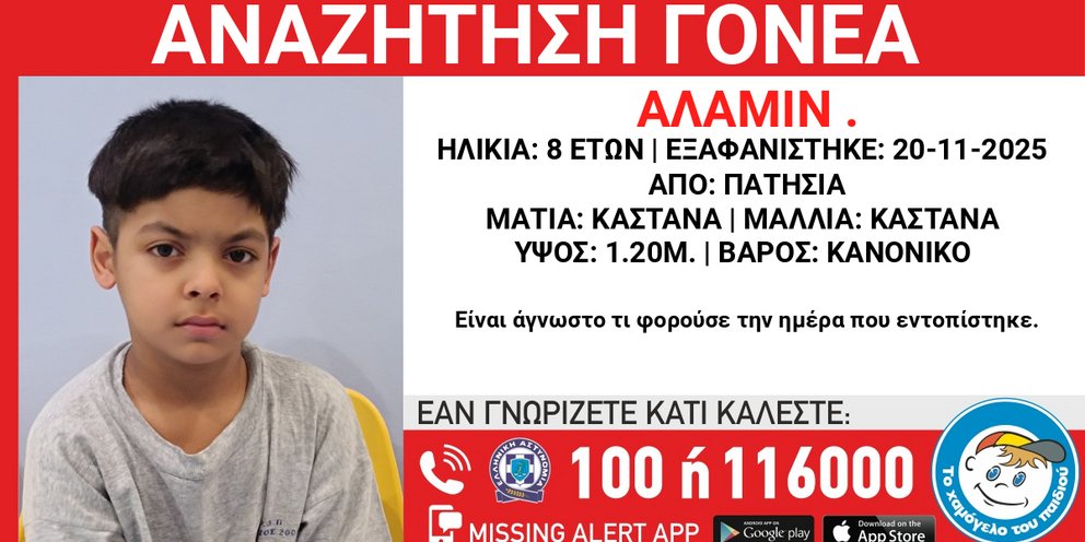 Όσοι έχουν πληροφορίες μπορούν να επικοινωνούν με την Ευρωπαϊκή Γραμμή για τις Εξαφανίσεις 116000, η οποία λειτουργεί όλο το 24ωρο, καθώς και σε όλα τα Αστυνομικά Τμήματα της χώρας.