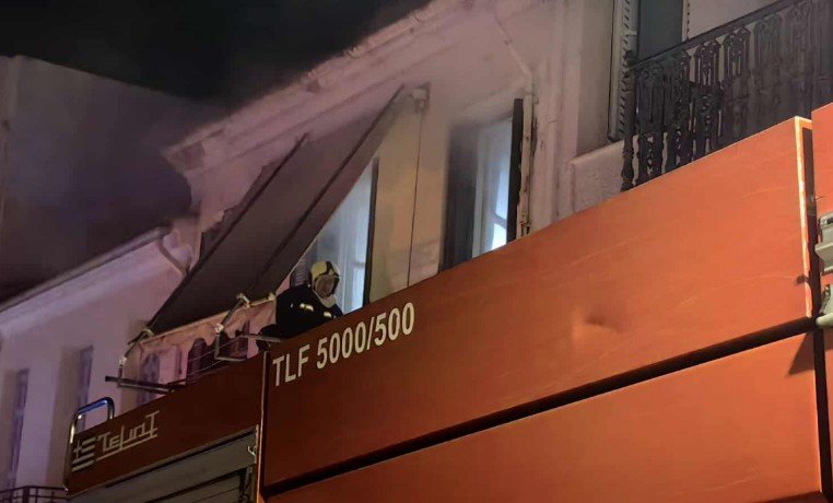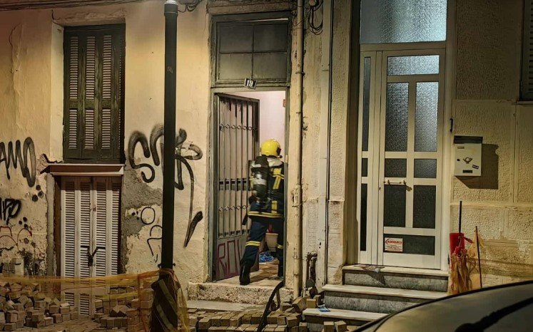 Η φωτιά ξεκίνησε από άγνωστη μέχρι στιγμής αιτία στον πρώτο όροφο του οικήματος, που βρίσκεται στην περιοχή του ιερού ναού Παντοκράτορος.