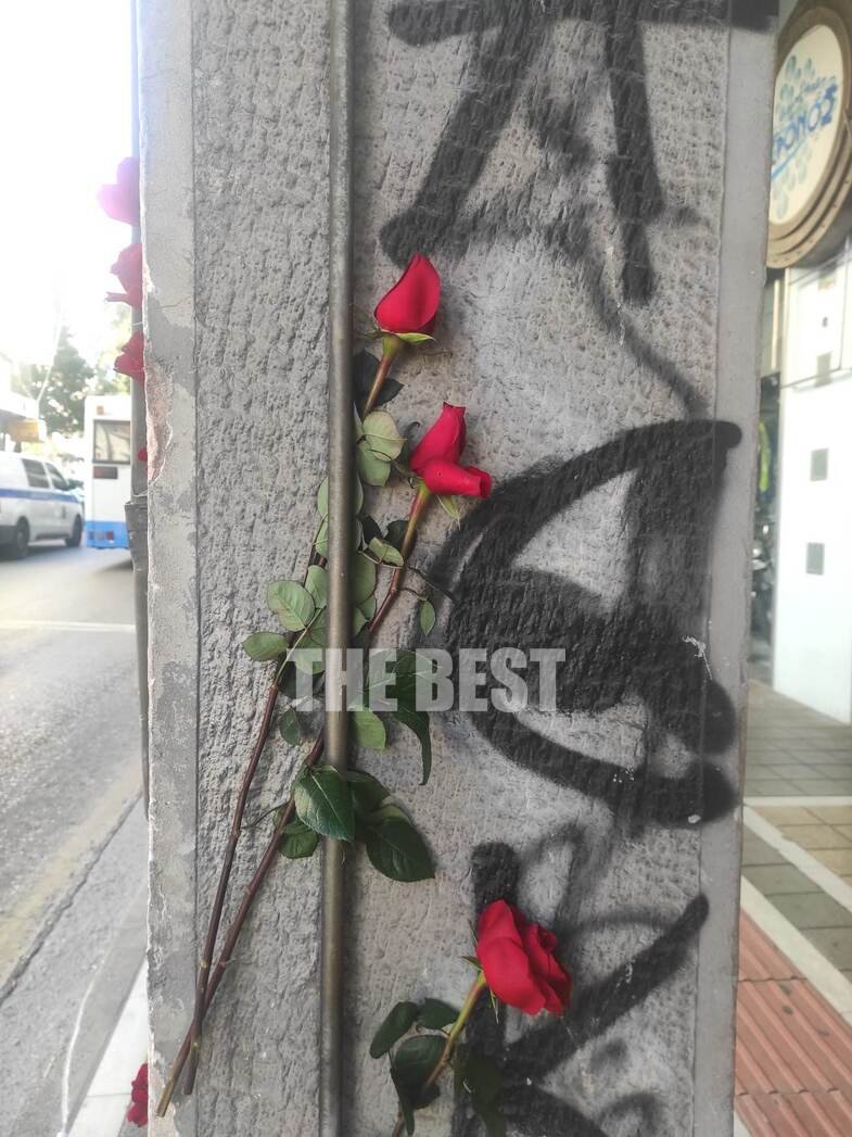 Στην κολόνα που του στέρησε τη ζωή είναι τώρα τυλιγμένο ένα κασκόλ της αγαπημένης του ομάδας -της Παναχαϊκής-, κόκκινα τριαντάφυλλα και ένα συγκινητικό γράμμα.
