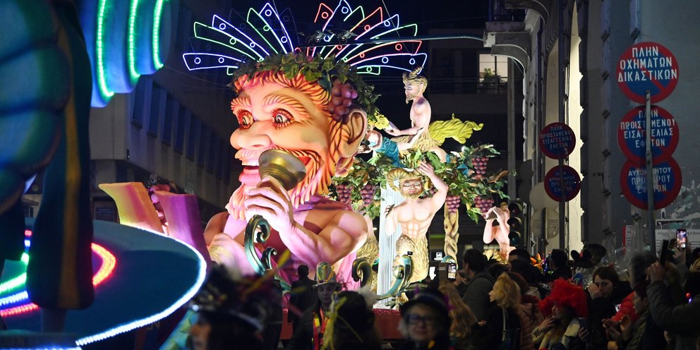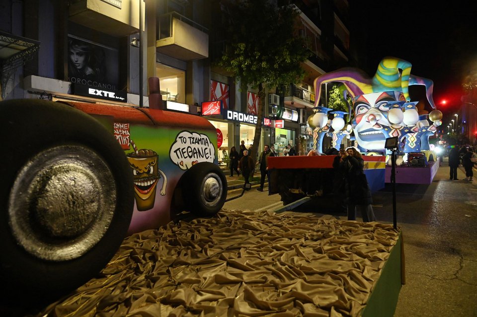 Απόψε, η πόλη ζει στους ρυθμούς της Μεγάλης Παρέλασης, όπου εντυπωσιακά άρματα, εμπνευσμένες στολές και ξέφρενοι ρυθμοί δημιουργούν μια μοναδική ατμόσφαιρα.