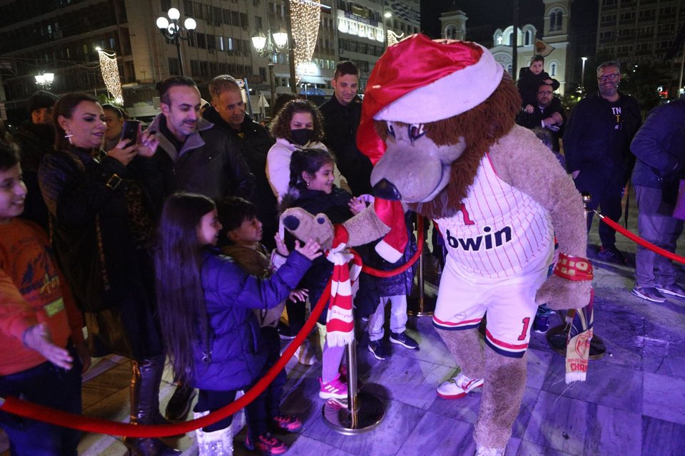 «Θρυλική» νότα στο γιορτινό event η μασκότ του Ολυμπιακού, η οποία μοίρασε συμβολικά δώρα και φωτογραφήθηκε με τα παιδιά.