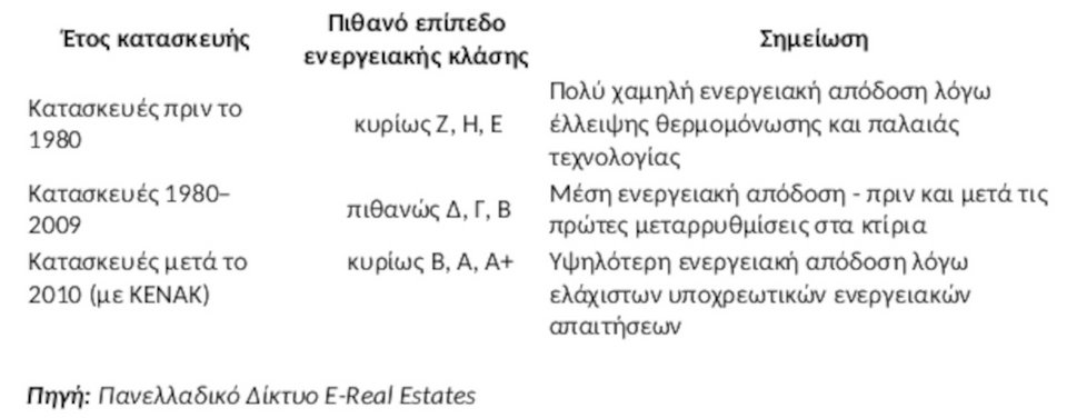 Έτος κατασκευής και ενεργειακή απόδοση κατοικιών