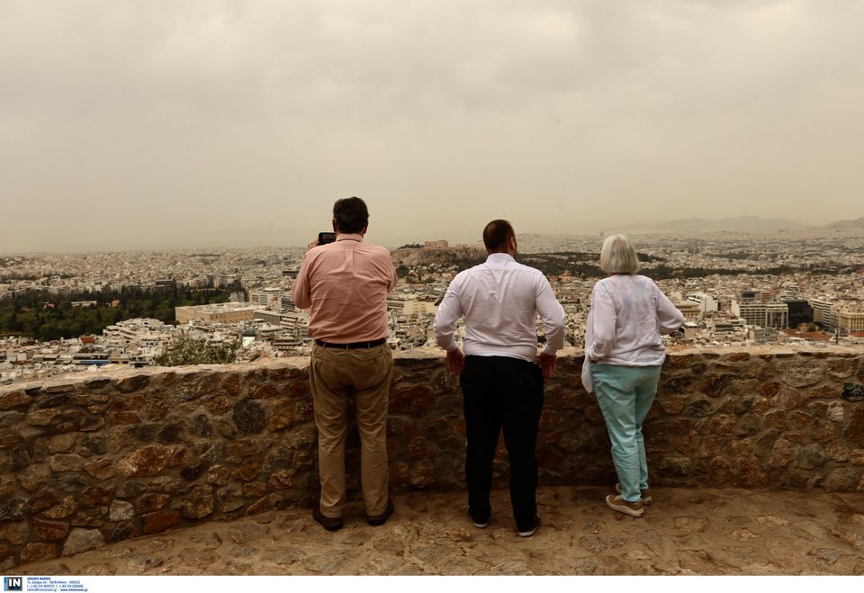 Εικόνες: Η αφρικανική σκόνη σκέπασε το κέντρο της Αθήνας