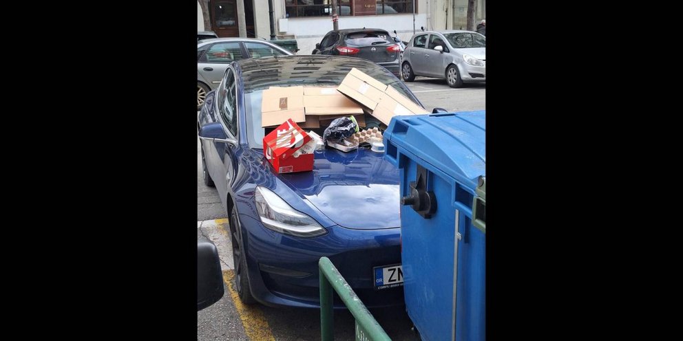 Έναν ιδιότυπο τρόπο διαμαρτυρίας επέλεξαν περαστικοί σε βάρος οδηγού Tesla, ο οποίος θεώρησε καλή ιδέα να σταθμεύσει ακριβώς μπροστά από κάδους απορριμμάτων, εμποδίζοντας πλήρως την πρόσβαση σε αυτούς.