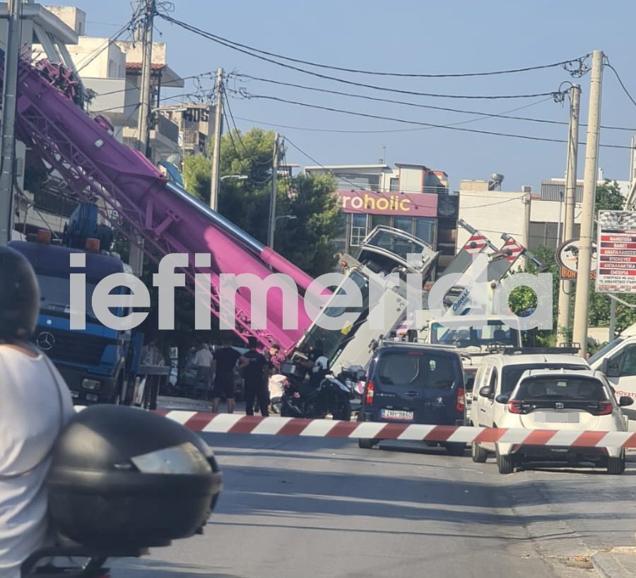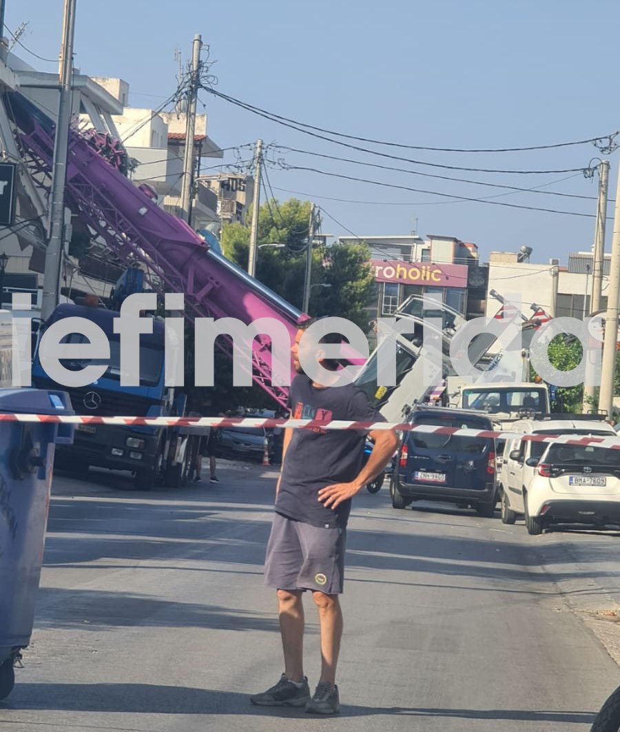 Αναστάτωσε σημειώθηκε στην οδό Αρκαδίας στο Περιστέρι όταν γερανοφόρο όχημα, μετά από καθίζηση του οδοστρώματος, έγειρε, παρέσυρε καλώδια ηλεκτροδότησης και έπεσε σε διώροφο σπίτι προκαλώντας μεγάλες ζημιές.