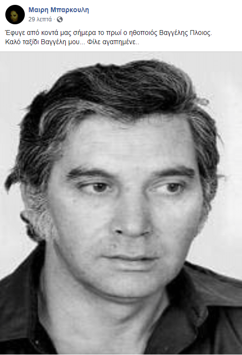 «Έφυγε από κοντά μας σήμερα το πρωί ο ηθοποιός Βαγγέλης Πλοιός.