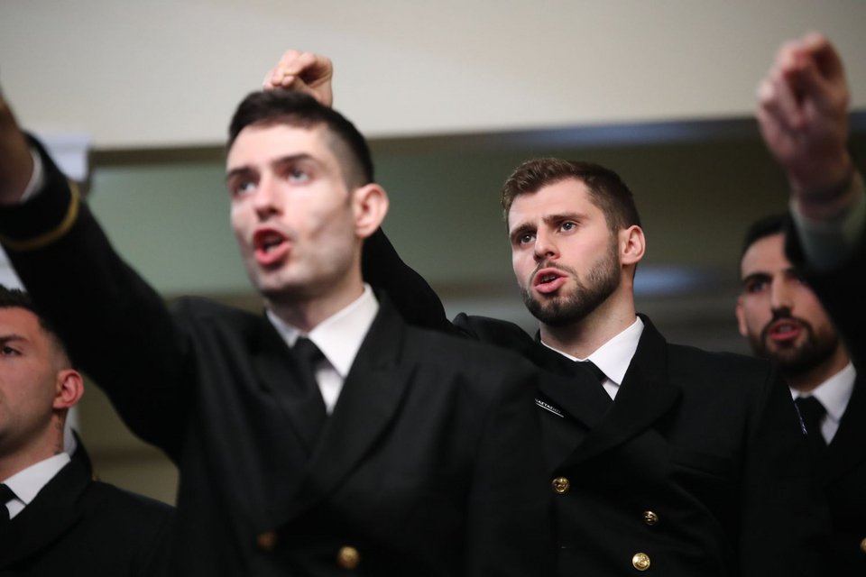 Ως αθλητές λοιπόν της πατρίδας μας περιμένω από εσάς να προσλάβετε και να ανταποκριθείτε στο σημαντικότατο ρόλο του εθνικού και κοινωνικού προτύπου που πανηγυρικά σας ανατίθεται με τη στολή του Έλληνα Αξιωματικού την οποία φέρετε.