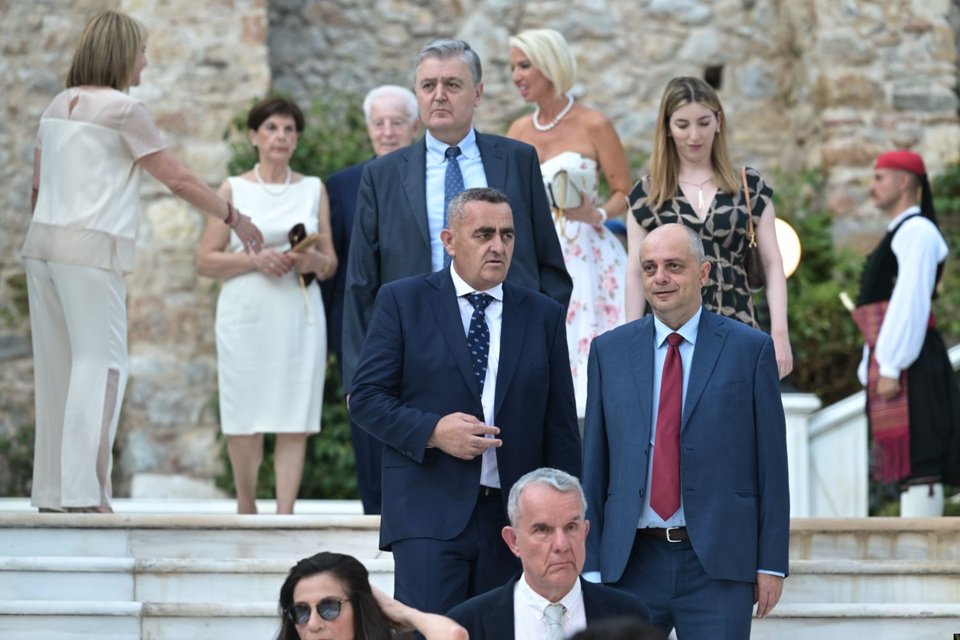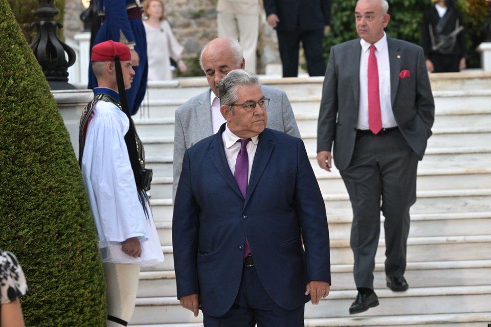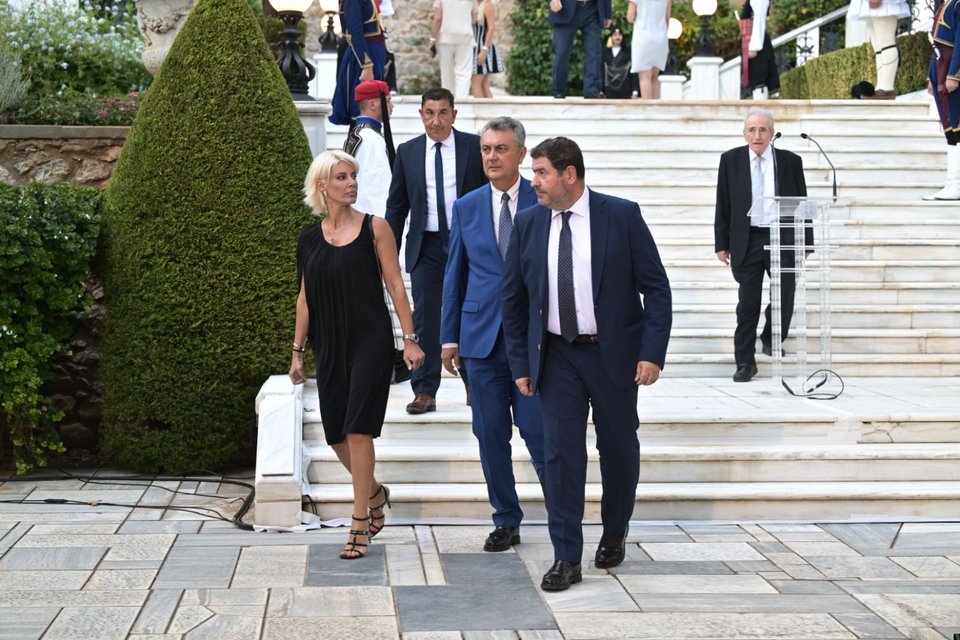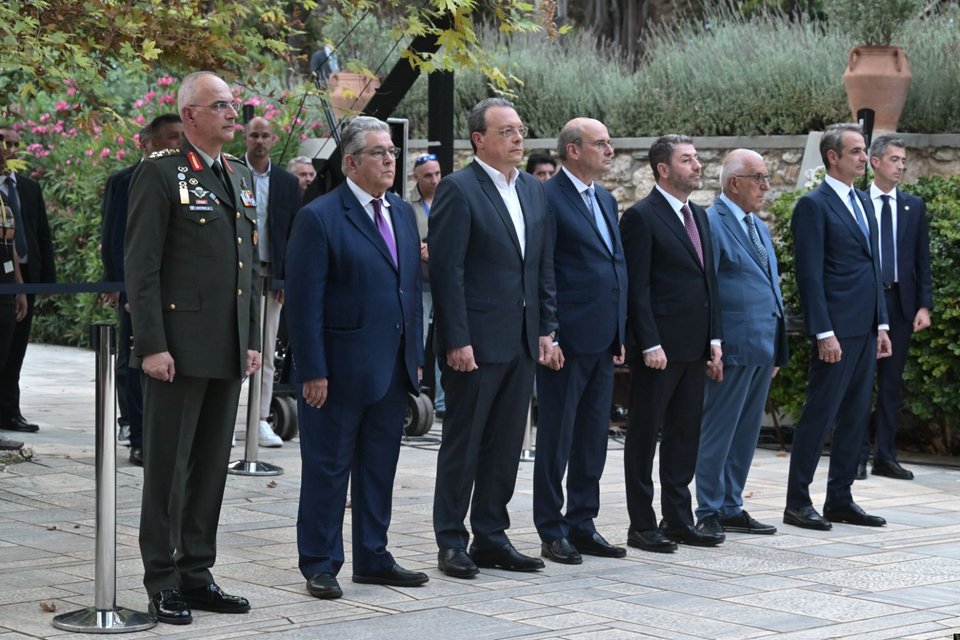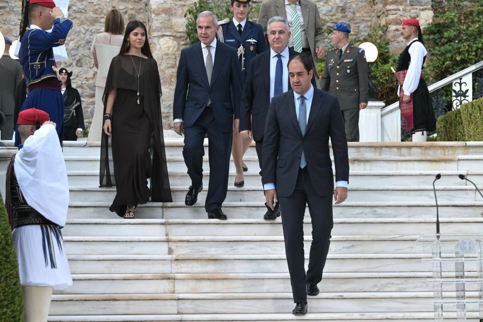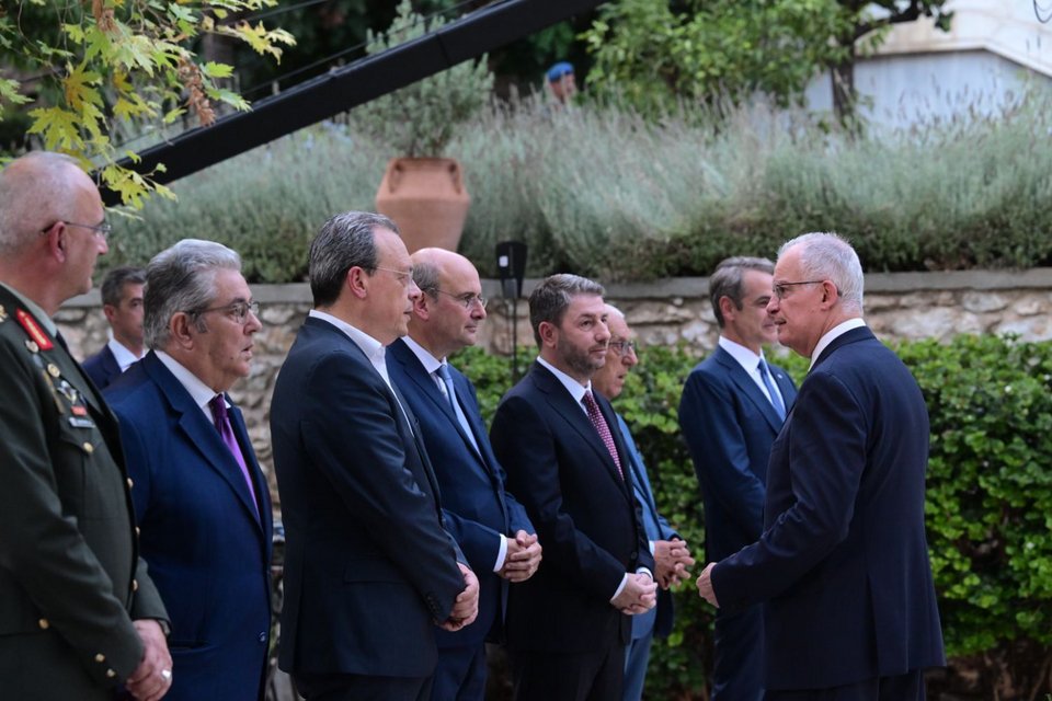 Από τους πολιτικούς αρχηγούς παρέστησαν ο πρωθυπουργός Κυριάκος Μητσοτάκης, ο αρχηγός της αξιωματικής αντιπολίτευσης Νίκος Ανδρουλάκης, ο πρόεδρος του ΣΥΡΙΖΑ Σωκράτης Φάμελλος και ο γενικός γραμματέας του ΚΚΕ Δημήτρης Κουτσούμπας, ενώ απουσίαζαν η Ζωή Κωνσταντοπούλου, ο Κυριάκος Βελόπουλος και ο Δημήτρης Νατσιός. Ο πρόεδρος της Νέας Αριστεράς Αλέξης Χαρίτσης έφθασε στην πόρτα του Προεδρικού, αλλά αποχώρησε καταγγέλλοντας ότι δεν επέτρεψαν την είσοδο στον συνοδό του, Παλαιστίνιο πρόσφυγα.