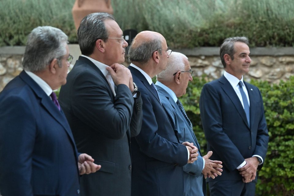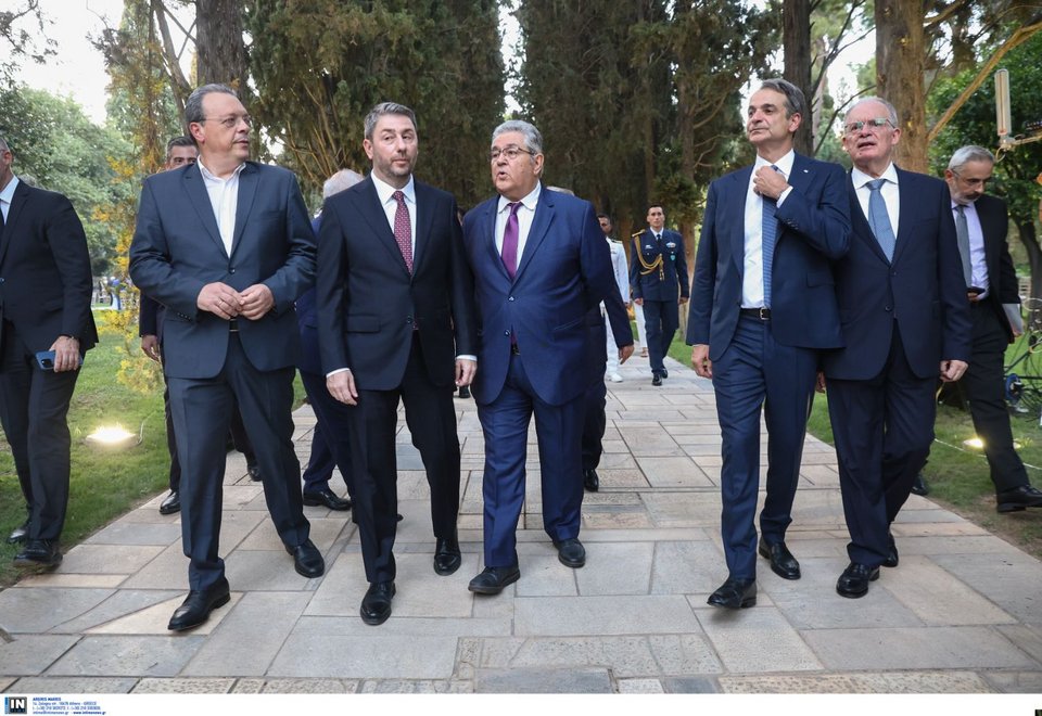 Με αμηχανία, μπηχτές και αιχμές κύλησε η χθεσινή συνάντηση των πολιτικών αρχηγών στον Κήπο του Προεδρικού Μεγάρου, όπου το κλίμα ήταν τουλάχιστον «μουδιασμένο».