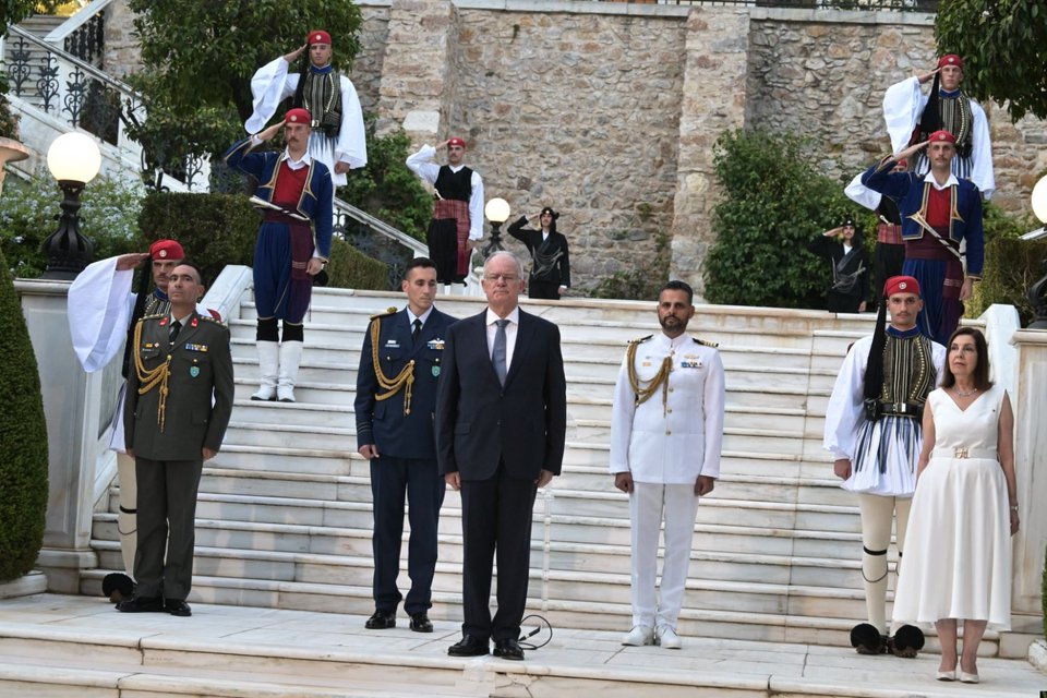 O Πρόεδρος της Δημοκρατίας άνοιξε τις πόρτες του Κήπου για τη γιορτή για την 51η επέτειο από την αποκατάσταση της Δημοκρατίας, υποδεχόμενος την πολιτική ηγεσία, εκπροσώπους των τριών σωμάτων του στρατού και της κοινωνίας.