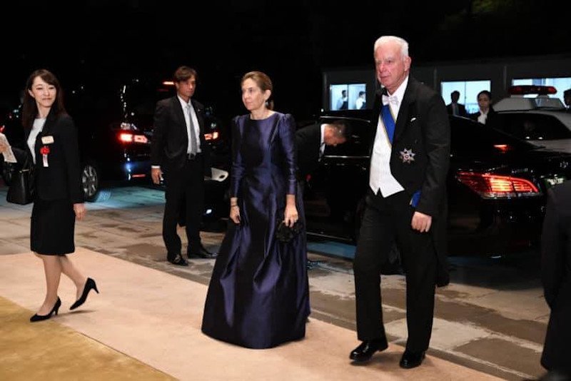 Ο αντιπρόεδρος της κυβέρνησης, που εκπροσώπησε την Ελληνική Δημοκρατία στην τελετή ενθρόνισης, στην οποία έδωσαν το «παρών» όλοι οι γαλαζοαίματοι του κόσμου, συνοδευόταν από τη σύζυγό του, που φορούσε μια εντυπωσιακή μπλε τουαλέτα.