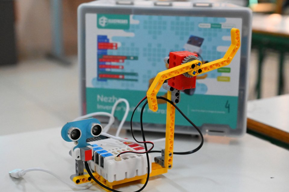 Ο Περιφερειάρχης Αττικής παρέδωσε στους εκπαιδευτικούς οκτώ εκπαιδευτικά πακέτα και συμμετείχε μαζί με τα παιδιά στη συναρμολόγηση της ρομποτικής κατασκευής.
