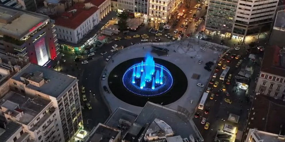 Στο νέο βίντεο από το Up Drones, η πλατεία Ομονοίας και το νέο συντριβάνι φαίνονται από ψηλά. Οι λήψεις έχουν γίνει με το φως της μέρας με το συντριβάνι να βρίσκεται σε λειτουργία και να εντυπωσιάζει με τον υδάτινο χορό του, αλλά και κατά τη διάρκεια της νύχτας όταν ξεχωρίζει ιδιαίτερα ο πολύχρωμος φωτισμός στα νερά.