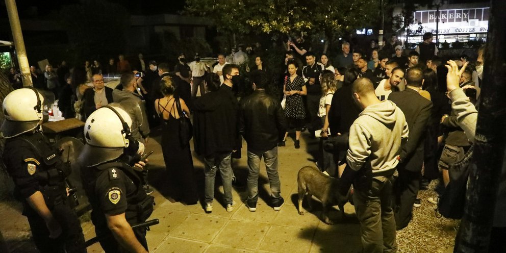 Στην πλατεία του Αγίου Ιωάννου στην Αγία Παρασκευή περίπου στις 21:00 συγκεντρώθηκαν περισσότερα από 200 άτομα (νεαροί και κάτοικοι) με επικεφαλής στέλεχος του ΑΝΤΑΡΣΥΑ (η κα Μελίνα Αλεφαντή) αντέδρασαν έντονα στην παρουσία της Αστυνομίας που έκλεισε την πλατεία μετά από απόφαση της κυβέρνησης.