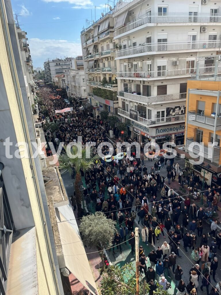 Δεν έχει ιστορικό προηγούμενο η συγκέντρωση που εξελίσσεται σήμερα στη Λαμία καθώς εκτός από την κεντρική πλατεία Πάρκου της Λαμίας, οι διαδηλωτές είχαν καλύψει και την ευρύτερη περιοχή αλλά και τους γύρω δρόμους. Σύμφωνα με τις εκτιμήσεις της αστυνομίας, οι διαδηλωτές είναι πάνω από 8.000, ενώ σύμφωνα με τους οργανωτές, ξεπερνούσαν τις 10.000. Νέοι, οικογένειες με τα παιδιά τους, από νωρίς το πρωί κατευθύνονταν στο κέντρο της Λαμίας για να διαδηλώσουν για τα δύο χρόνια που συμπληρώνονται σήμερα από την τραγωδία στα Τέμπη όπου 57 άνθρωποι έχασαν την ζωή τους.