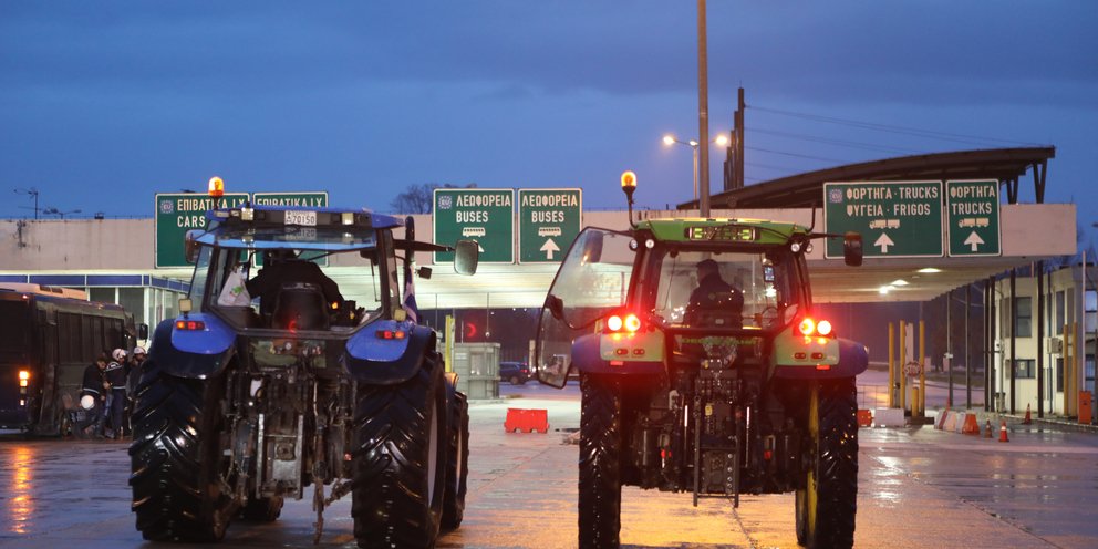 Συνεχίζουν και σήμερα τους πολύωρους αποκλεισμούς οι παραγωγοί στα αγροτοκτηνοτροφικά μπλόκα στα τελωνεία των Ευζώνων και της Νίκης.