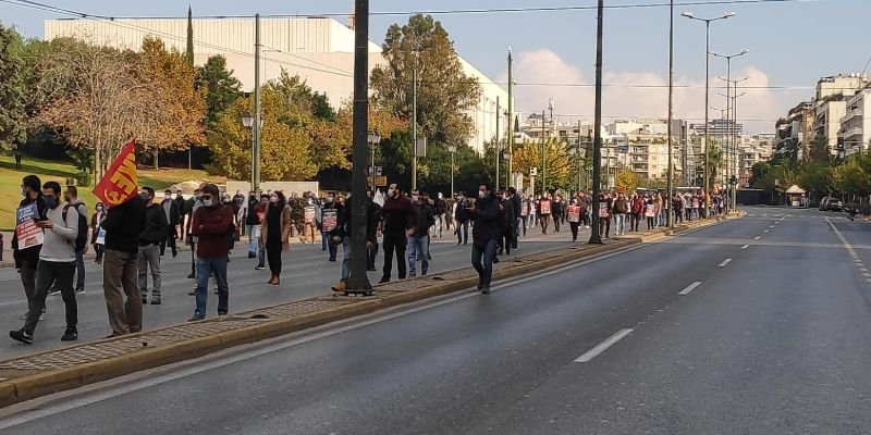 Οι διαδηλωτές του ΚΚΕ κατάφεραν να αιφνιδιάσουν την ΕΛ.ΑΣ., καθώς έφτασαν μεμονωμένα στο σημείο, τηρώντας τα μέτρα για τον κορωνοϊό, φορώντας μάσκες και διατηρώντας όσο ήταν δυνατόν αποστάσεις. Στη συνέχεια σχημάτισαν ένα μικρό μπλοκ και έκαναν μικρή πορεία.