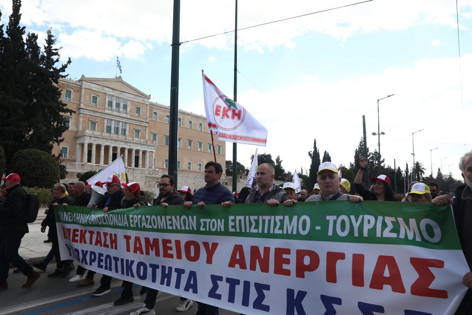 Οι εργαζόμενοι συμμετέχουν στην απεργία της Πανελλήνιας Ομοσπονδίας Εργαζομένων στον Επισιτισμό - Τουρισμό (ΠΟΕΕΤ).