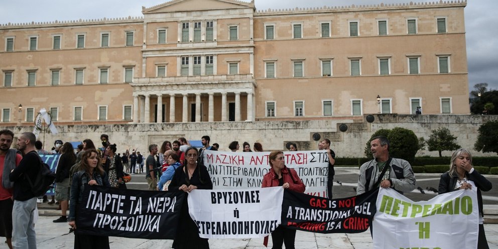 Εκατοντάδες πολίτες διαδηλώνουν στο Σύνταγμα για να σταματήσουν την περιβαλλοντική καταστροφή, ζητώντας άμεσες για τη σωτηρία του πλανήτη.