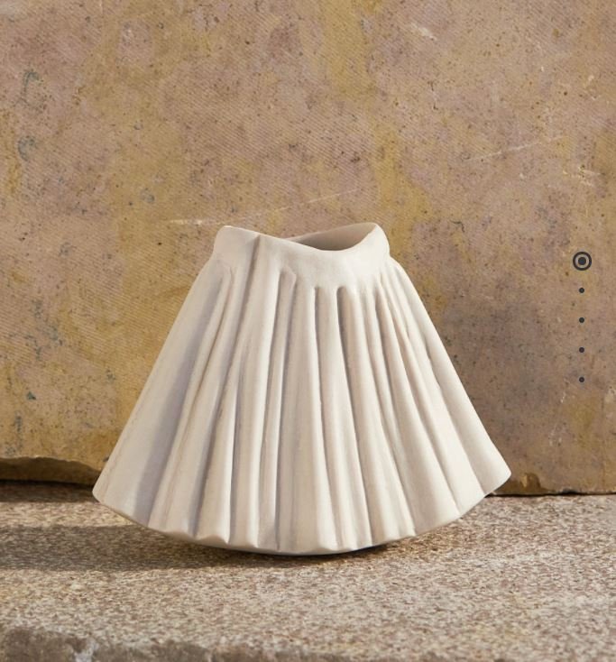 Η πορσελάνινη φουστανέλα, μοιάζει να κινείται, να μετακινούνται οι πτυχώσεις της φούστας, να ανεμίζουν. Σύμβολο διαχρονικό που παραπέμπει απευθείας στο 1821 και στην επέτειο των 200 ετών από την ελληνική Επανάσταση. Και όμως, αυτή η φουστανέλα, ο τρόπος που δημιούργηθηκε, διασπά και αυτό το φράγμα του 1821 και μοιάζει να ριζώνει στην αρχαιότητα. Οι πτυχώσεις της φουστανέλας μεταμορφώνονται σε ραβδώσεις από κίονες ενός αρχαίου ναού με τρόπο ευανάγνωστο. Σαν να χαϊδεύεις έναν κίονα στον ναό του Ποσειδώνα στο Σούνιο. Σαν να βλέπεις τον βηματισμό ενός εύζωνα στο Σύνταγμα. Τοποθετήθηκε η φουστανέλα σε ένα ξύλινο κουτί που ανοίγει σύροντας το καπάκι για να την ανακαλύψεις ακουσμπισμένη σε ένα στρώμα από υλικό που θυμίζει άχυρο.