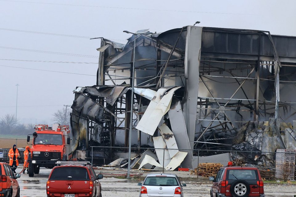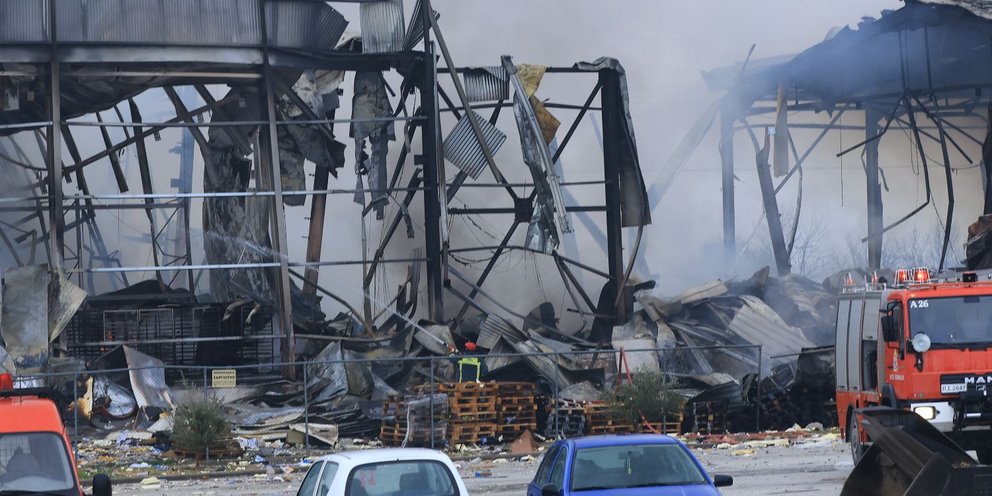 Από την έκρηξη κατέρρευσε η οροφή του εργοστασίου ενώ αμέσως τα κτίρια τυλίχθηκαν στις φλόγες.
