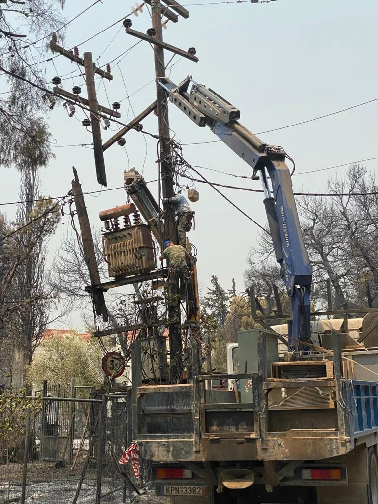 Στη Βαρυμπόμπη συνεργεία του ΔΕΔΔΗΕ εργάζονται από το πρωί για την αποκατάσταση γραμμής μέσης τάσης που τροφοδοτεί την περιοχή, ενώ στην Εύβοια χωρίς ρεύμα παραμένουν τέσσερις οικισμοί, επίσης εξαιτίας της πυρκαγιάς στην περιοχή.