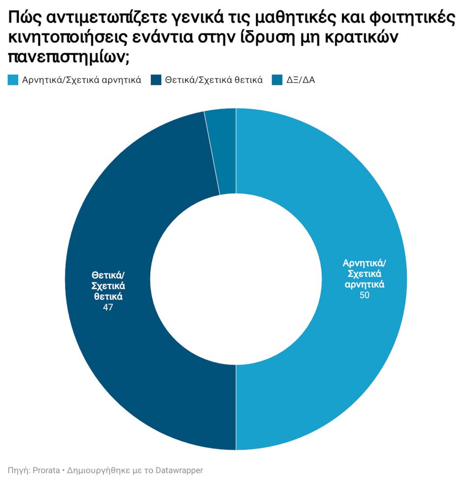 Οι ερωτηθέντες παρουσιάζονται διχασμένοι σχετικά με τις μαθητικές και φοιτητικές κινητοποιήσεις σχετικά με την ίδρυση των μη κρατικών πανεπιστημίων. Το 47% τάσσεται υπέρ των φοιτητικών κινητοποιήσεων, ενώ 50% είναι εναντίον.