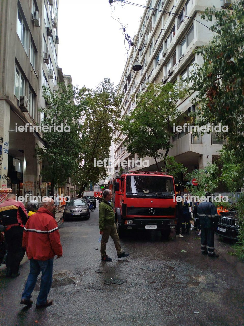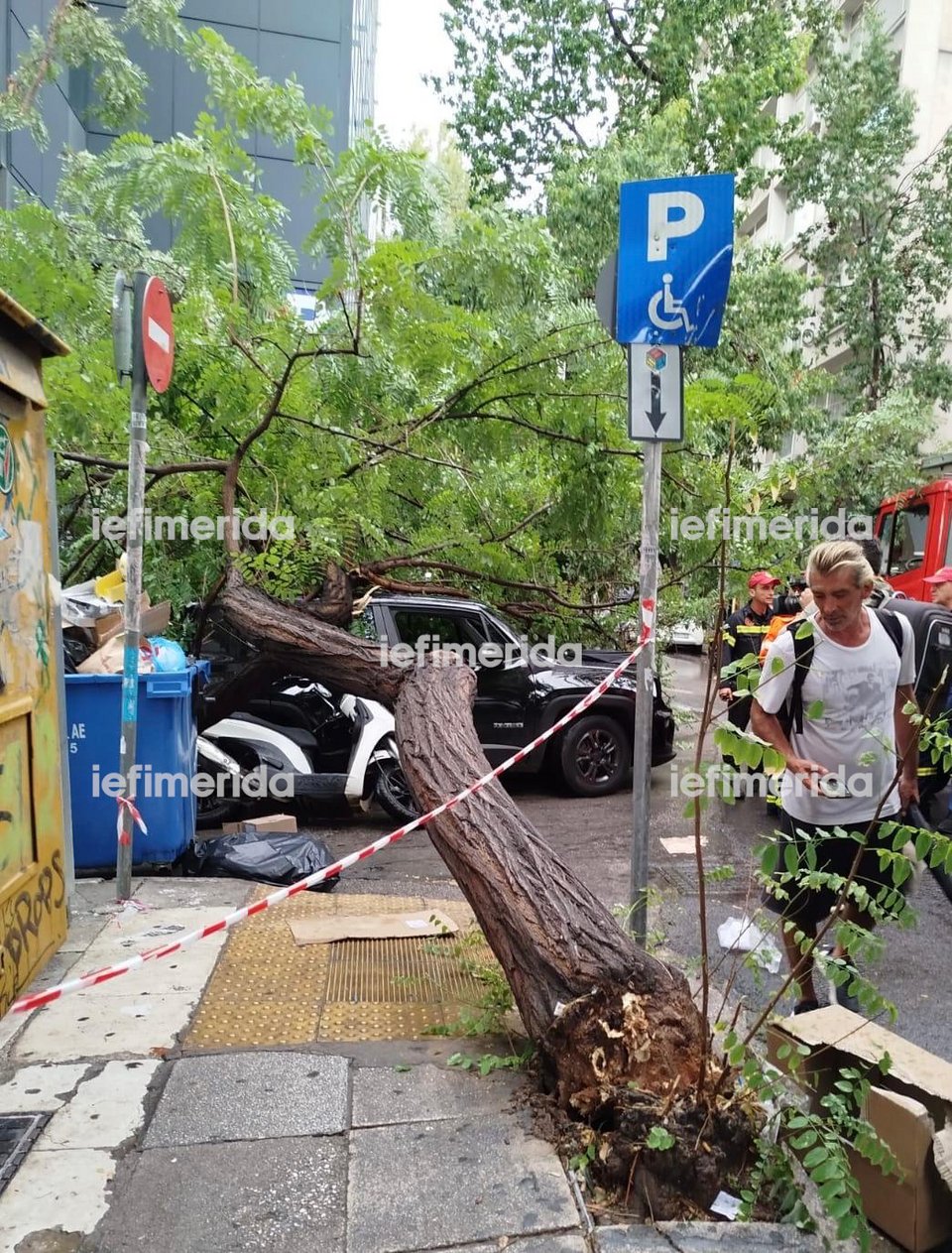 Δέντρο έπεσε στη διασταύρωση των οδών Εμμανουήλ Μπενάκη και Γαμβέτα, τραυματίζοντας έναν ανυποψίαστο πολίτη, οδηγό μηχανής που περνούσε από το σημείο.