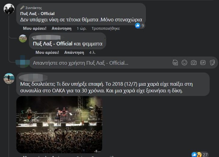 Ωστόσο, αυτή είναι η τρίτη ανακοίνωση του συγκροτήματος. Όπως προκύπτει από παρατηρητικούς χρήστες των social media, οι Πυξ Λαξ λίγη ώρα αργότερα, μετά τα οργισμένα σχόλια, έσπευσαν να διορθώσουν αρχικά και εν συνεχεία να τη διαγράψουν και να ανεβάσουν μια νέα ανάρτηση με δύο ουσιώδεις διαφορές: