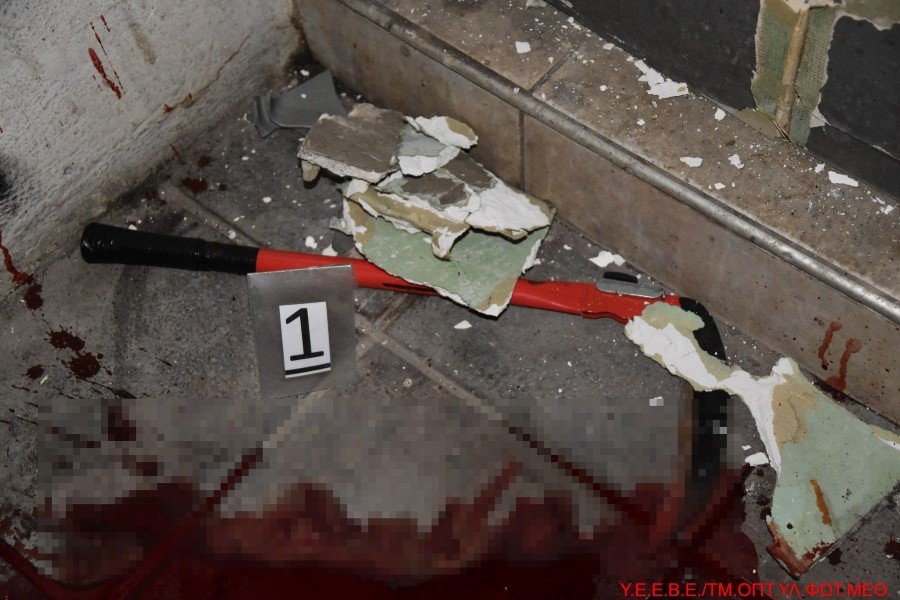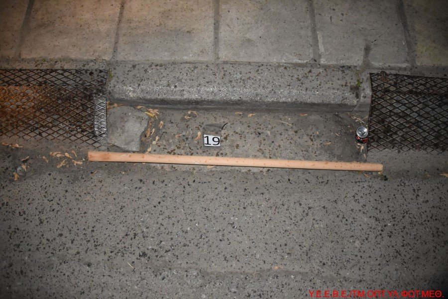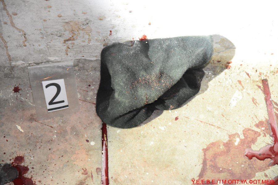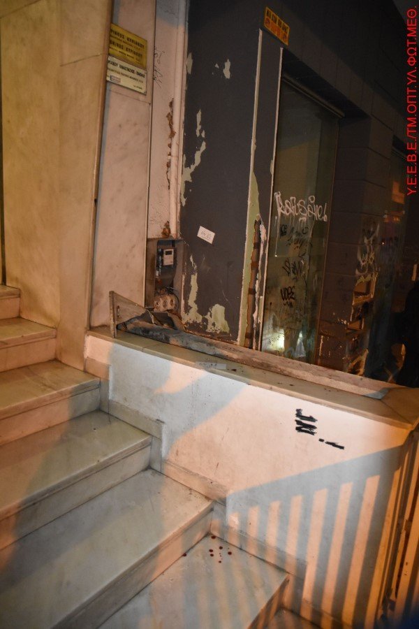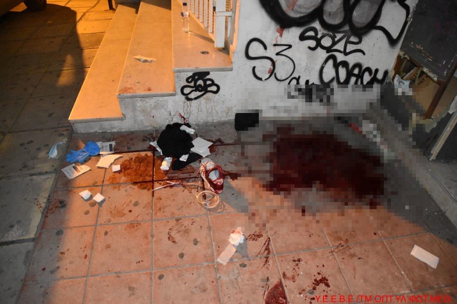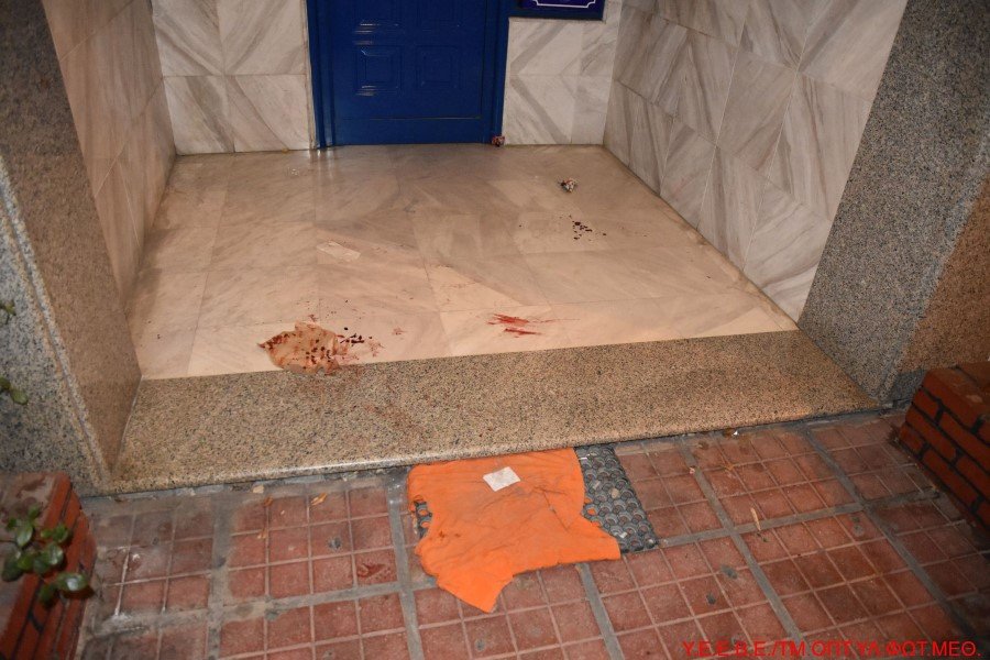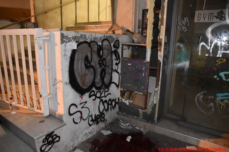 Το σκηνικό γύρω από την είσοδο της πολυκατοικίας αποκαλύπτει τη μανία της ομάδας των σκληρών χούλιγκαν. Οι αστυνομικοί φωτογράφισαν το σημείο του φονικού κατά την αυτοψία που έκαναν για τη συλλογή πειστηρίων.