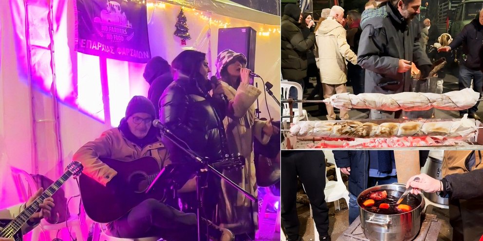 Μια διαφορετική αλλαγή χρόνου κάνουν φέτος οι αγρότες της Θεσσαλίας. Παραμένοντας στους δρόμους στο πλαίσιο των κινητοποιήσεών τους, μετέτρεψαν το μπλόκο της Νίκαιας στη Λάρισα σε πρωτοχρονιάτικη γιορτή!