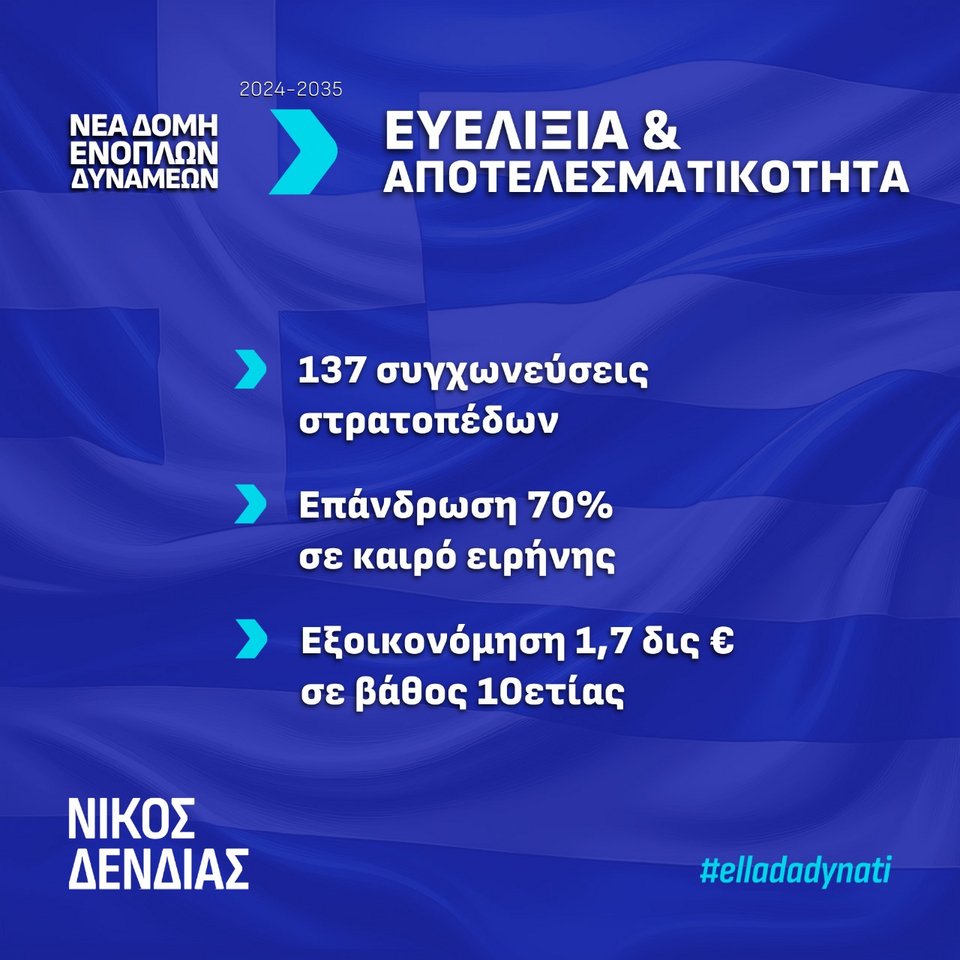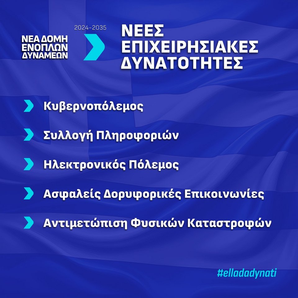Ο κύριος στόχος της Νέας Δομής Δυνάμεων 2024-2035 είναι ο ΠΟΛΛΑΠΛΑΣΙΑΣΜΟΣ της ΜΑΧΗΤΙΚΗΣ ΙΣΧΥΟΣ των Ενόπλων Δυνάμεων, ώστε να διαθέτουν δυνατότητα αποτελεσματικής αποτροπής κάθε δυνητικού αντιπάλου.