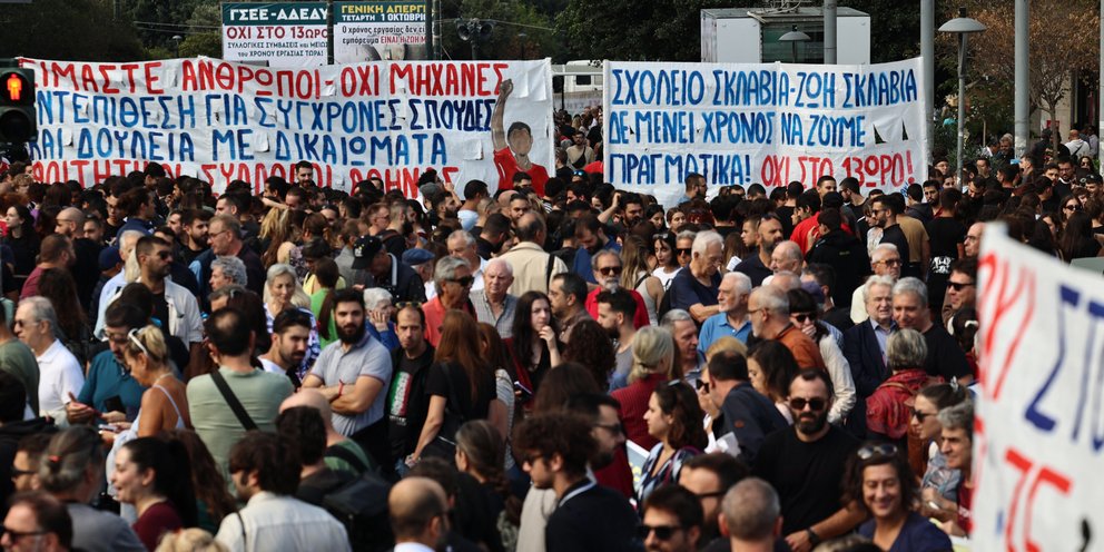 «Είναι μεγάλος αυτός ο αγώνας σήμερα της εργατικής τάξης, για τον εργάσιμο χρόνο. Και δεν φτάνει μόνο μέχρι την απόσυρση αυτού του επαίσχυντου νομοσχεδίου που φέρνει η κυβέρνηση για το 13ωρο, ούτε μέχρι να πεταχτεί αυτό στα σκουπίδια. Γιατί ήδη έχει ξεκινήσει η συζήτηση στους χώρους δουλειάς, έχει ξεκινήσει ο αγώνας, για το πώς πρέπει να ζούμε τον 21ο αιώνα, την εποχή των μεγάλων επιστημονικών ανακαλύψεων, της Τεχνητής Νοημοσύνης, με λιγότερες ώρες δουλειάς. Με 7ωρο, πενθήμερο, 35ωρο, με περισσότερο ελεύθερο χρόνο για πολιτισμό, αθλητισμό, για να μπορεί ο γονέας να βλέπει τα παιδιά του, να συμμετέχει στα κοινά, να μπορεί να ικανοποιεί τις σύγχρονες λαϊκές ανάγκες, για μια νέα κοινωνία. Αυτή η μάχη, η σημερινή, είναι μόνον η αρχή» δήλωσε ο ΓΓ του ΚΚΕ Δημήτρης Κουτσούμπας από το κέντρο της Αθήνας.