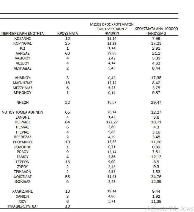 - 98 κρούσματα στην ΠΕ Δυτικού Τομέα Αθηνών