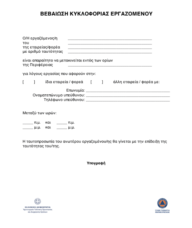 - Βεβαίωση Ελεύθερης Κυκλοφορίας Εργαζόμενου (PDF)