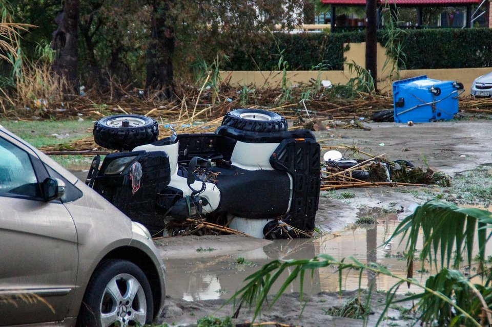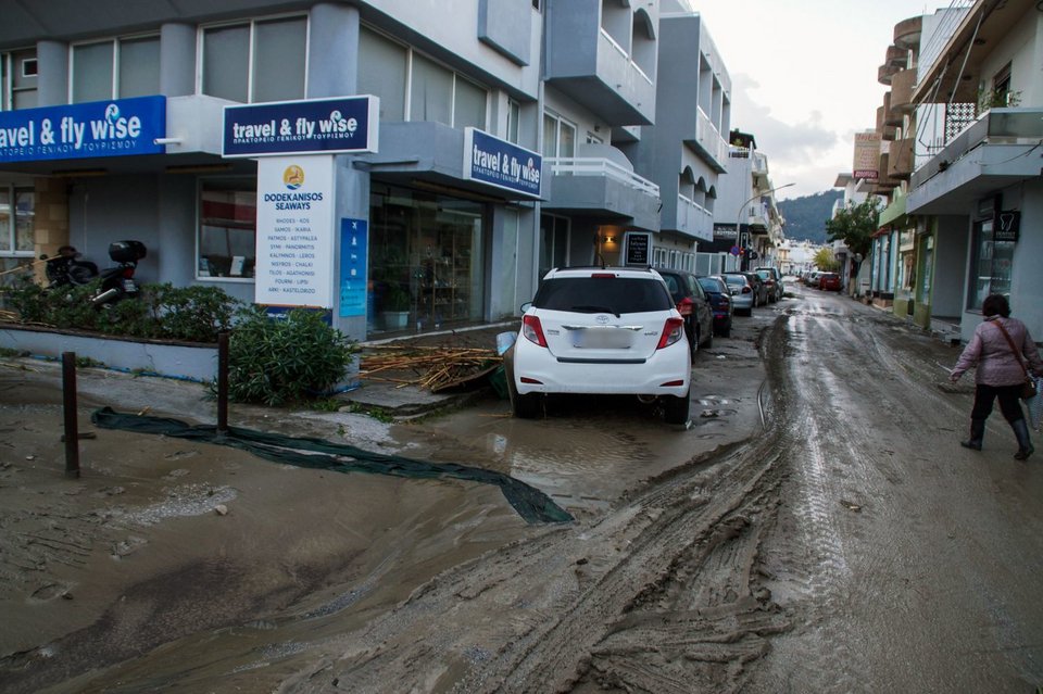 Υπενθυμίζεται ότι η κακοκαιρία άφησε πίσω της μεγάλες καταστροφές, ενώ οι περιοχές που επλήγησαν περισσότερο ήταν η Ιαλυσός και το Φαληράκι. Σπίτια, δρόμοι και καταστήματα πλημμύρισαν, φερτά υλικά και κορμοί δένδρων έχουν φράξει αυλές και εισόδους σπιτιών, ενώ τα ορμητικά νερά παρέσυραν τα θεμέλια και το υπέδαφος ενός ξενοδοχείου, με αποτέλεσμα να κρέμεται στον «αέρα». Οι κάτοικοι του νησιού μετρούν τις πληγές τους, ενώ η κακοκαιρία αναμένεται να τελειώσει το πρωί της Τρίτης, σύμφωνα με την πρόγνωση των μετεωρολόγων.