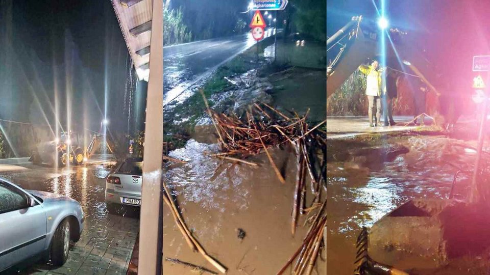 Οι εικόνες από το χωριό Κορνός είναι ανησυχητικές, καθώς μεγάλοι όγκοι νερού διασχίζουν τον οικισμό, μετατρέποντας δρόμους και μονοπάτια σε χειμάρρους.
